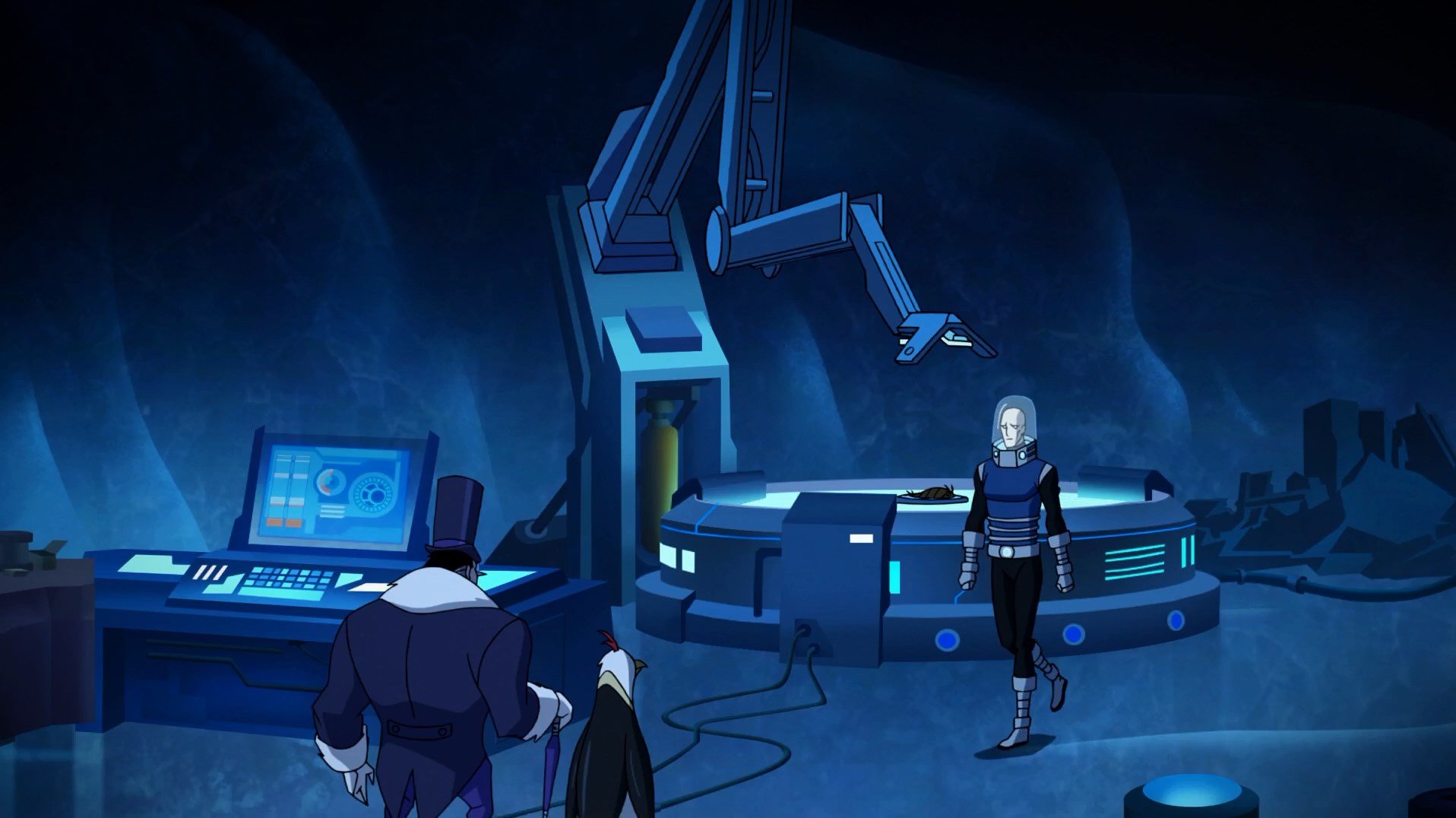 Сюжет: Пока новый Робин пытается научиться не совершать ошибки, далеко среди полярных льдов Пингвин убеждает доктора Виктора Фриза вместо бесконечных попыток защитить своё уединение - отправиться в Готэм и раз и навсегда пресечь все попытки Уэйн Энтерпрайзис по разработке нефтяных месторождений в Арктике. Вооружившись новой технологией Фриза, злодеи вызволяют из Аркхэма самых опасных и сильных заключенных: Убийцу Крока, Бэйна, Хима и Глинолицего. Еще пара дней, и на Готэм обрушится внезапное похолодание и гигантские чудовища... но, к счастью, у Бэтмена всегда в запасе есть и план и гигантский боевой робот.